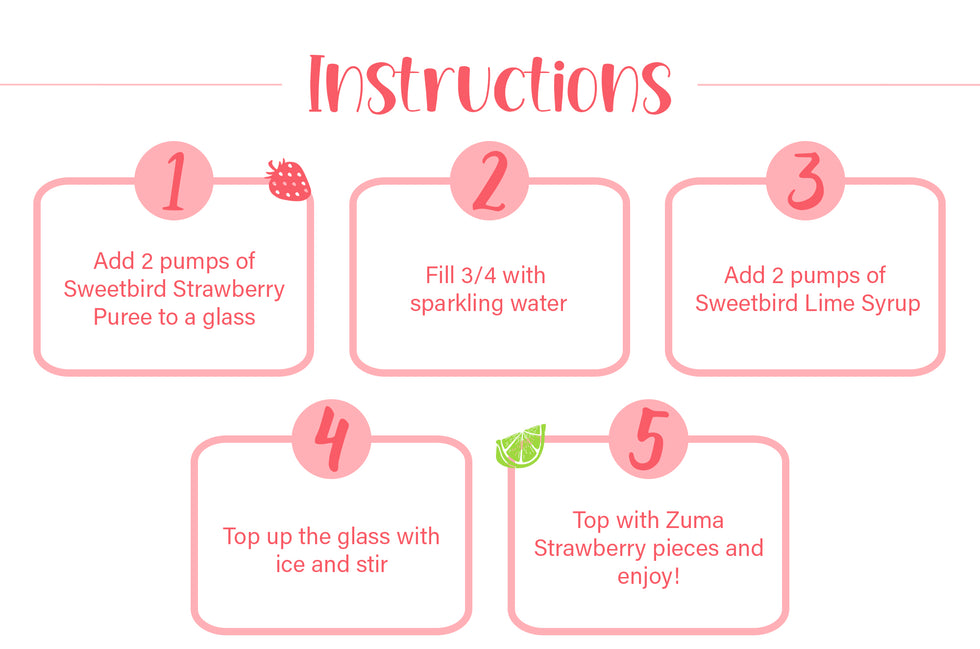 This May, treat your tastebuds to a burst of sunshine with our Strawberry & Lime Sparkler. Sweetbird's juicy strawberry purée meets a zingy splash of lime, all brought to life with ice-cold sparkling water and a sprinkle of Zuma Strawberry pieces. It’s light, refreshing, and packed with feel-good flavour. Whether you're powering through the workday or soaking up some spring vibes, this sparkler is your perfect sip of the season 🍓