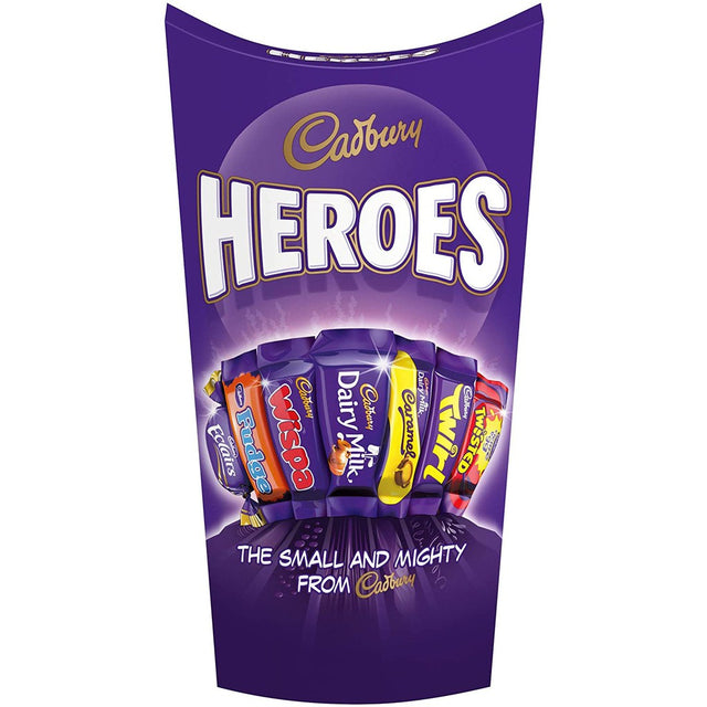 Cadbury Heroes are a mix of miniature chocolate bars, containing all your favourite Cadbury classics in one box. Heroes fans love to rummage in the box to find their favourites, including Dairy Milk, Caramel, Eclairs, Fudge, Creme Egg Twisted and Twirl.