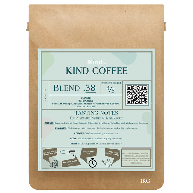 Title | Kind Coffee Blend .38 50/50 Arabica/Robusta Wholebean (1kg) x 6 |